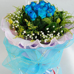 • 11枝蓝色妖姬,外围黄莺满天星,