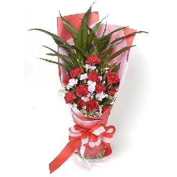 • 红色康乃馨12枝,富贵竹3枝;粉多头康,小百合适量
