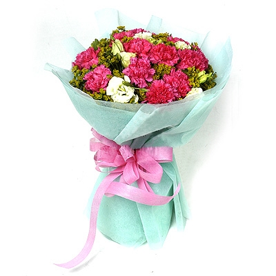 • [材 料]:桃红色康乃馨22枝,配花丰满