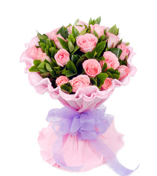 • 粉色玫瑰19枝,栀子叶丰满间插