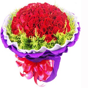 • [材 料]:99枝大朵昆明红玫瑰,黄莺外围,