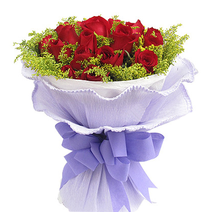 • [材 料]:19枝顶级红玫瑰居中,黄莺丰满