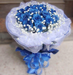 • 蓝玫瑰19支,满天星丰满