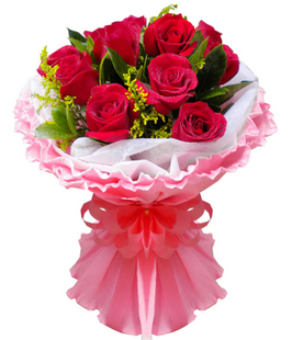 • [材 料]:9支红玫瑰,黄莺+绿叶点缀.