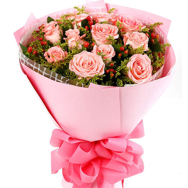 • 11枝A级粉色玫瑰包装。